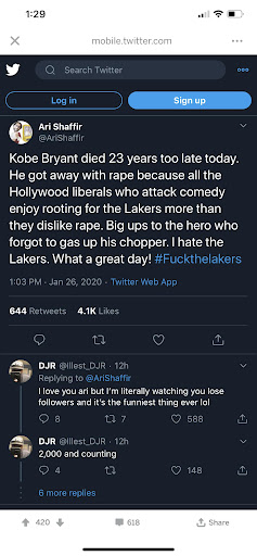 He retweeted the tweet after receiving much backlash and threats from bryant fans and claimed he was.